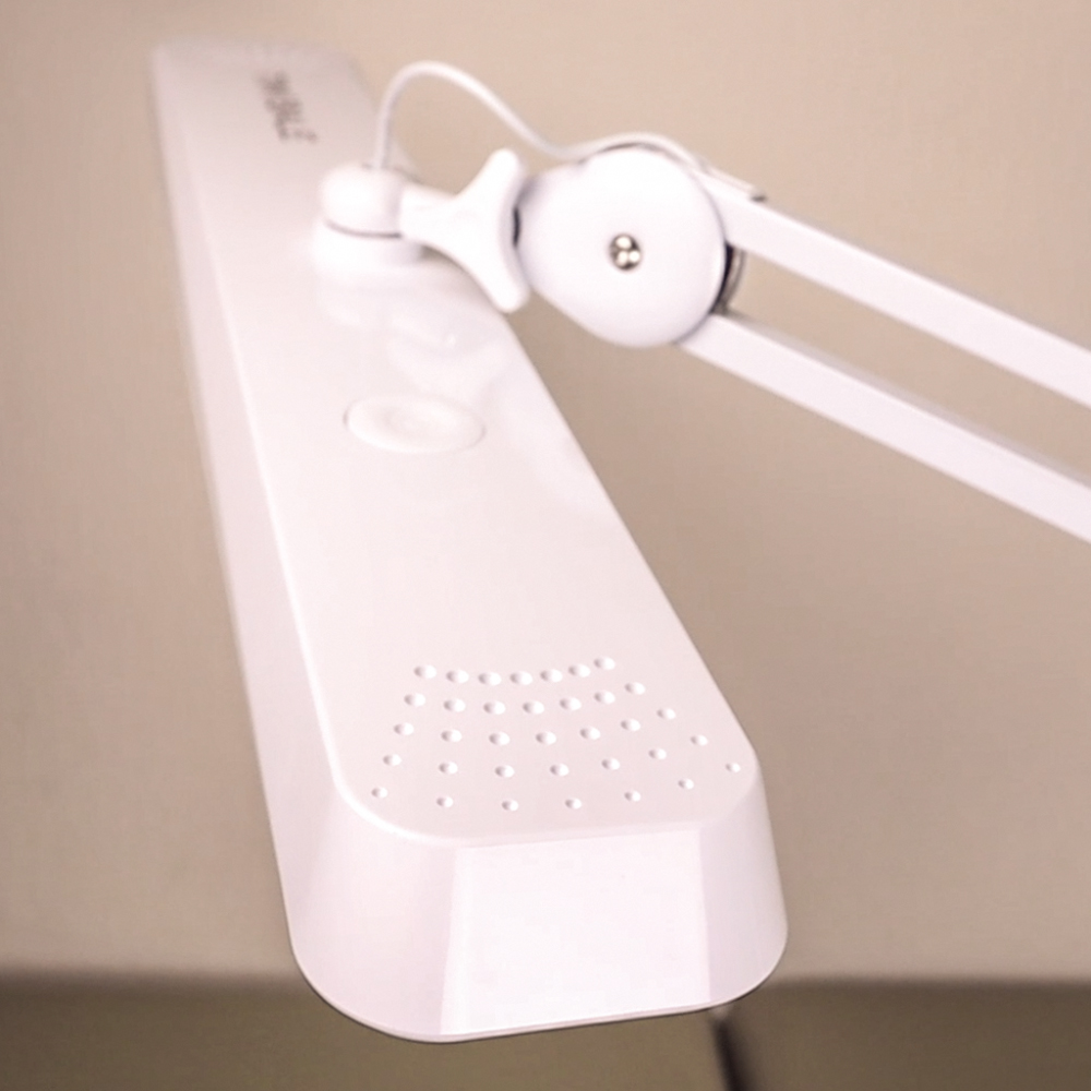 Светильник дает мягкое, равномерное освещение без теней и мерцания, а длина "головы" лампы позволяет осветить сразу всю рабочую поверхность, что существенно снижает нагрузку на глаза и позволяет комфортно работать более длительное время.
