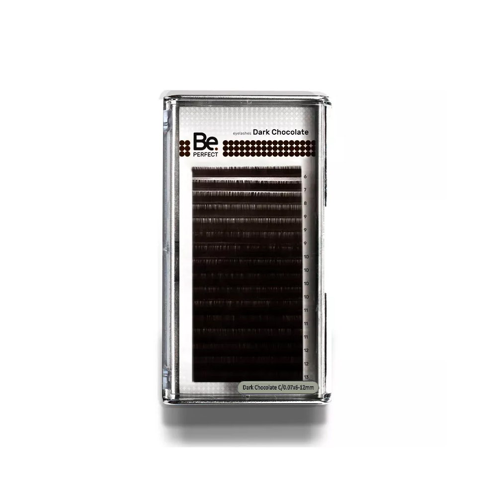 Ресницы Be Perfect Dark Chocolate применяются при наращивании ресниц профессиональными лэшмейкерами. Современное волокно позволяет добиться идеального изгиба, при этом ресницы не ломаются и легко снимаются с ленты, на которой благодаря плотному расположению помещено максимальное количество ресниц.