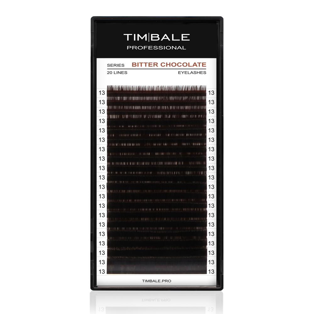 Ресницы TimBale Bitter Chocolate отличаются очень тёмным насыщенным коричневым цветом по всей длине ресниц. Отлично подходят клиентам со светлым цветом волос.