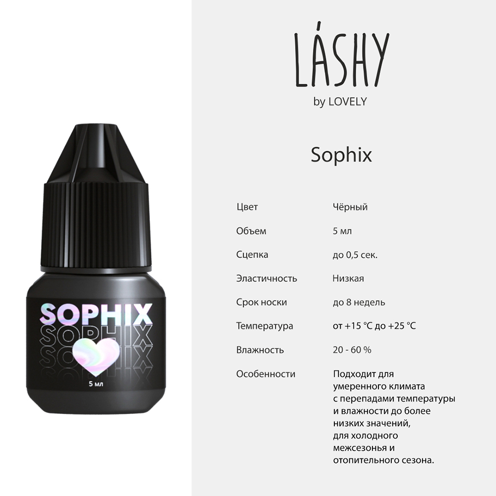 Sophix, Matrix, Bionix - новое поколение клеев от LASHY. Инновационная формула корейского сырья, протестированная технологами Академии Lovely и отвечающая трендам. Клея LASHY разработаны для мастеров, стремящихся уменьшить время процедуры наращивания без потери качества самой процедуры. Поэтому были разработаны первые клея в брендах Glory Group со сроком годности 8 месяцев* и параметрами, отвечающими различным условиям.