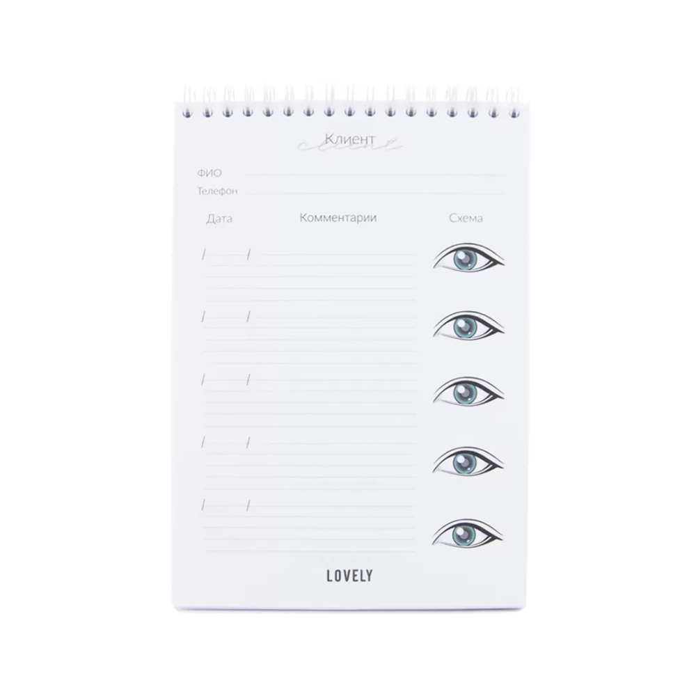Лэшмейкер бук необходим каждому мастеру для ведения базы клиентов и записи важной информации. Лэшмейкер сохранит всю важную информацию, данные о клиентах не потеряются и не сотрутся. Специальная форма каждой страницы содержит поля для записи и иллюстрацию глаза для обозначения схемы наращивания. Блокнот имеет оптимальный размер, пружина располагается сверху, а значит всегда удобно его заполнять, напечатан на высококачественной бумаге.