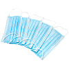 Маска одноразовая трехслойная, фиксируется резинками.