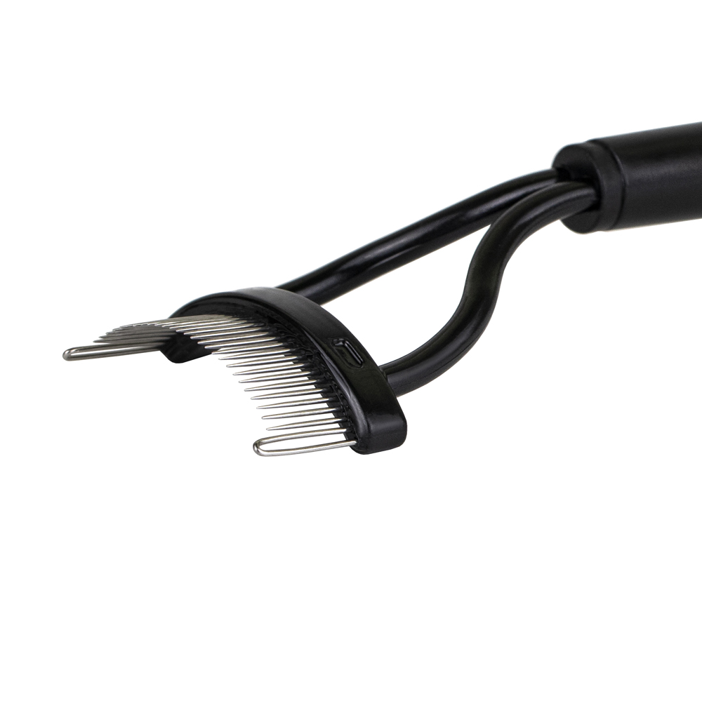Аккуратно расположенные металлические зубчики помогают убрать излишки туши и разделить ресницы. Анатомическая форма расчески делает использование максимально легким. Длинная ручка обеспечивает удобство при использовании. После использования расческу легко очистить, а для поддержания чистоты зубьев присутствует пластиковый колпачок.