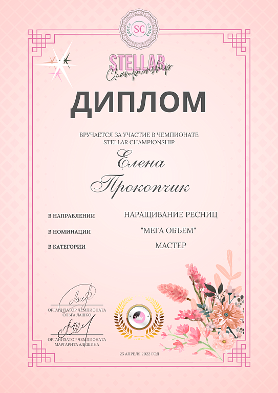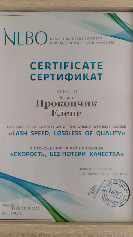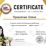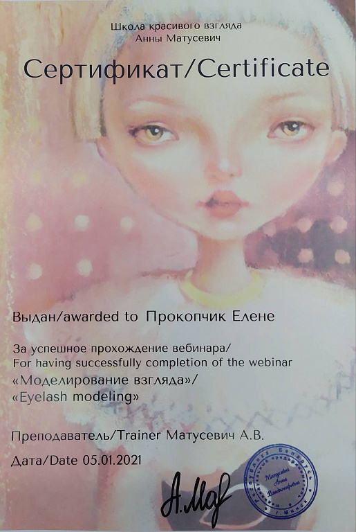 Мастер по наращиванию и ламинированию ресниц с 2018 года. Мастер по наращиванию ресниц в ручной технике. Прошла много курсов по повышению квалификации в цветном наращивании ресниц и объёмном наращивании ресниц, также трендовых эффектов наращивания.