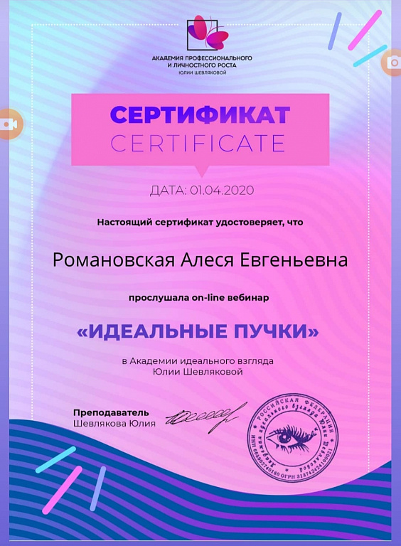 В 2018 году закончила своё первое базовое обучение и с тех пор учусь постоянно))) Постоянно повышаю свою квалификацию на различных курсах, мастер-классах, участвую в марафонах и вебинарах.