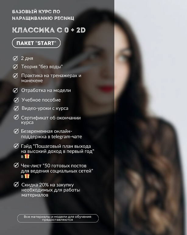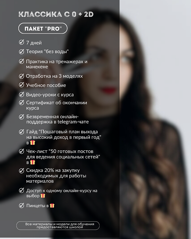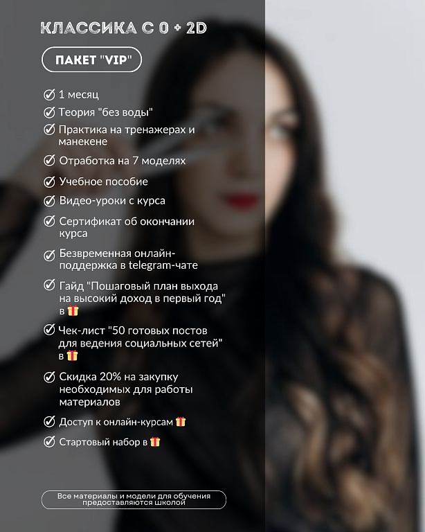 Мы верим, что практика — залог успеха. Каждая ученица получит возможность работать на моделях, оттачивая свои навыки и уверенность.