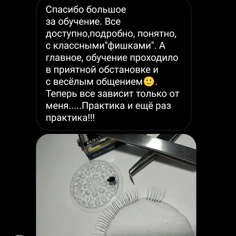 На обучении учимся не только ресницы клеить, но и: обработка фото, функционал инсты(аватар, ник, шапка профиля и т.д.), создаём портфолио, работа с клиентами и т.д.