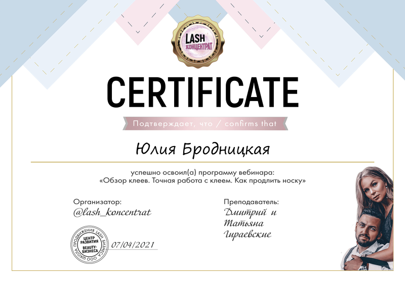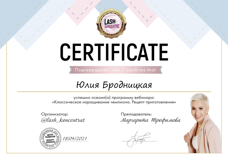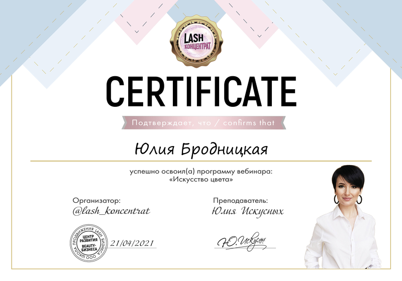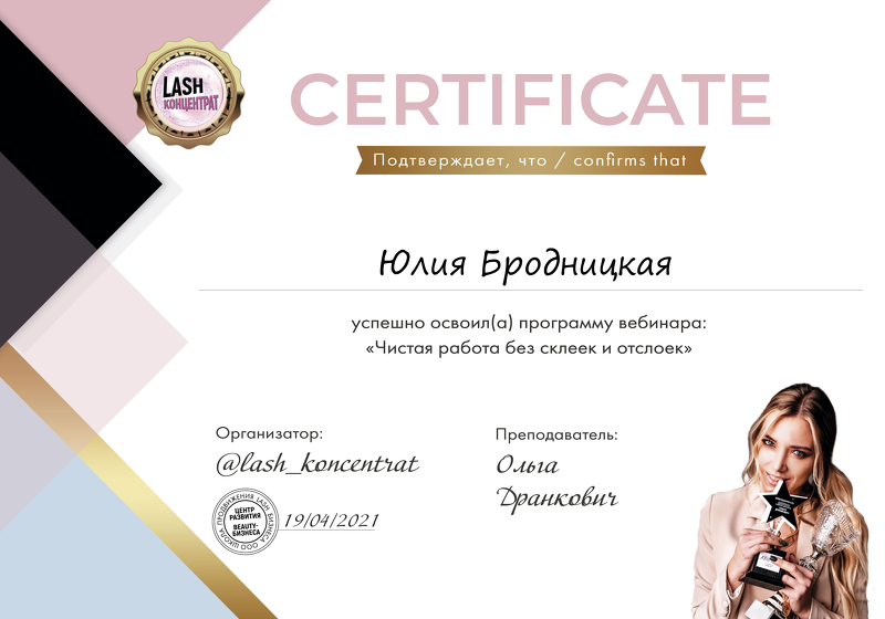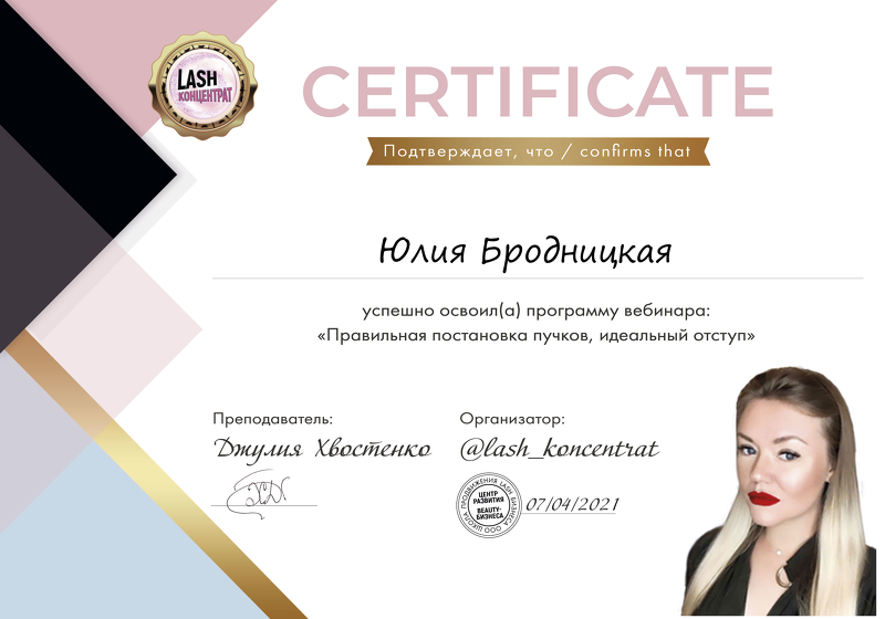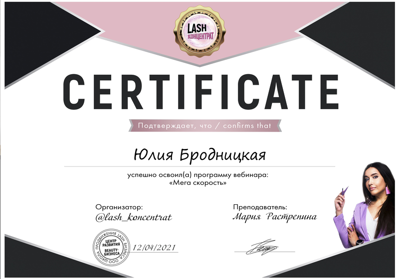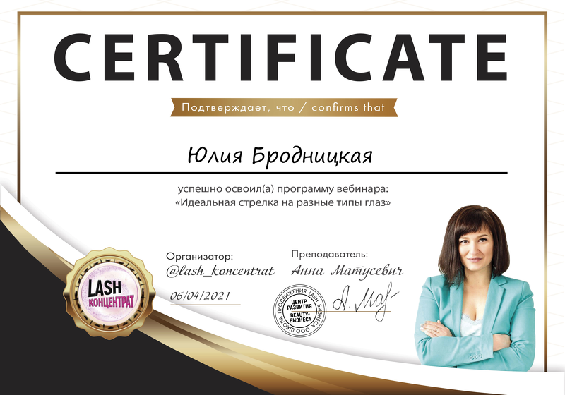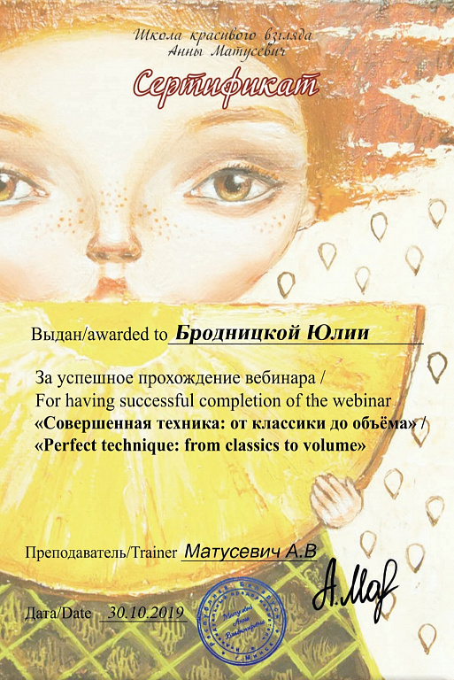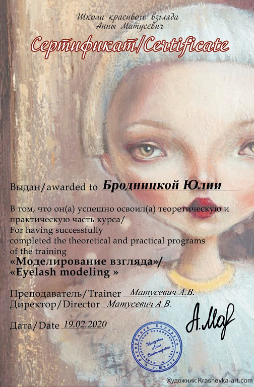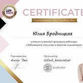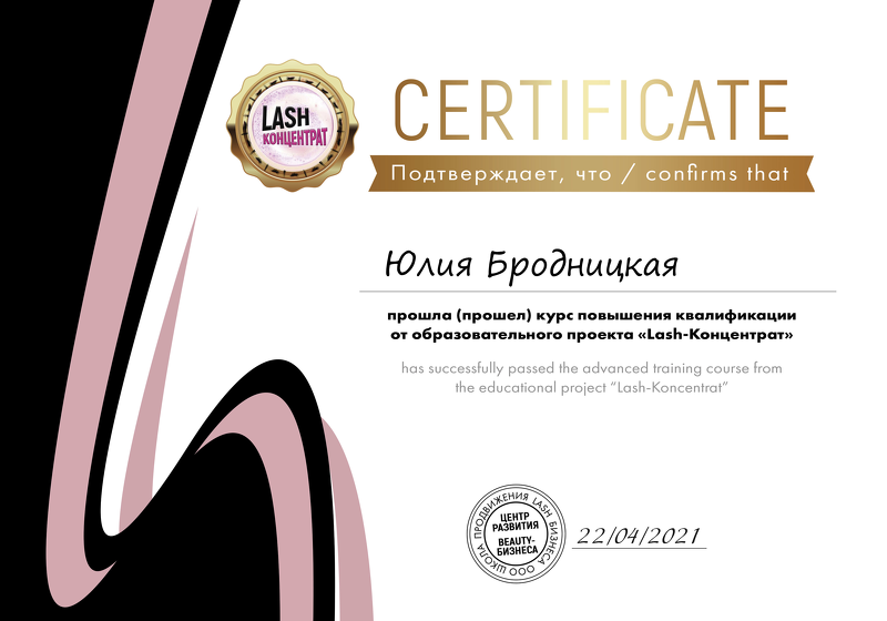 Меня зовут Бродницкая Юлия. Занимаюсь наращиванием ресниц с 2018 года. С 2021 года начала тренерскую деятельность.